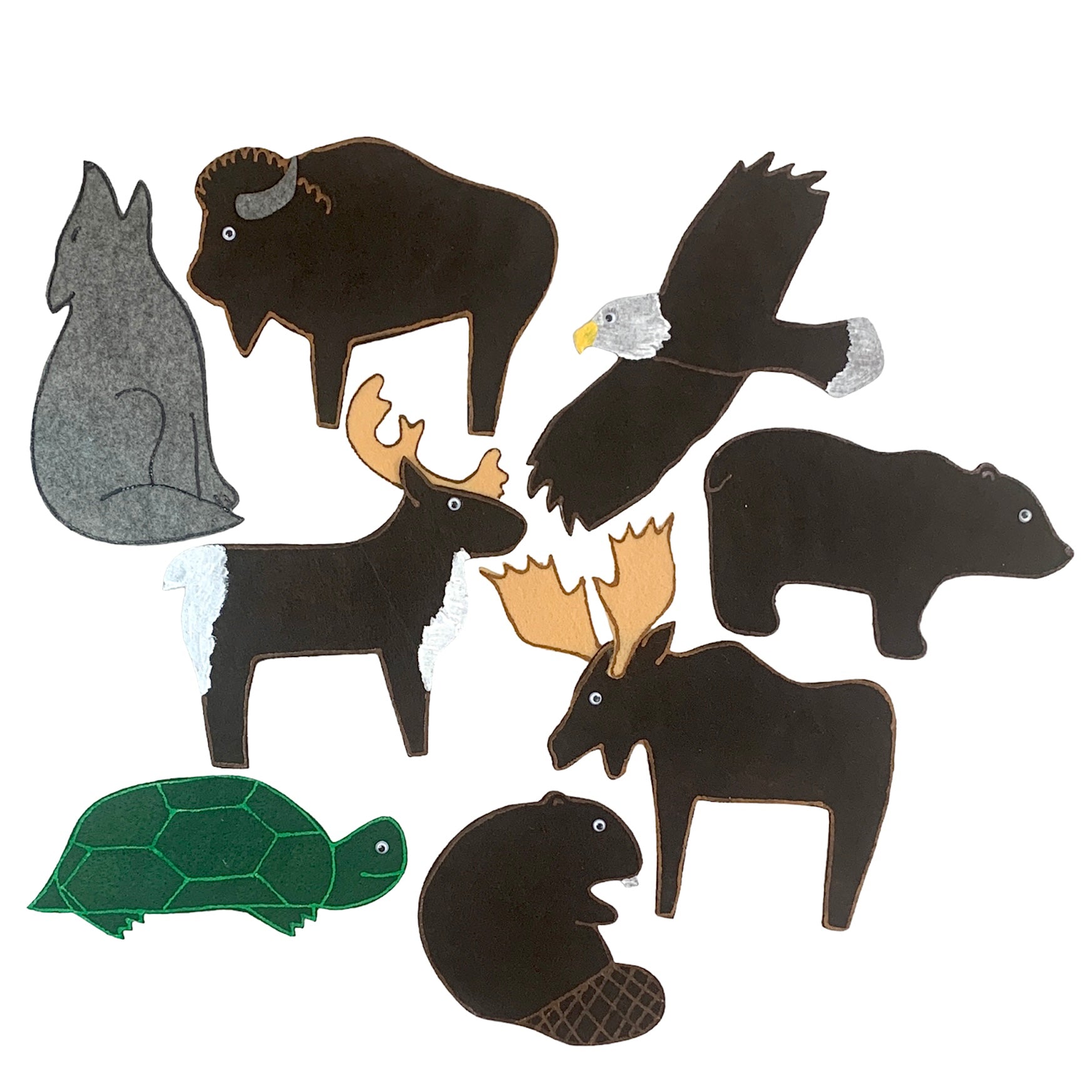 (Includes one of each of the following: wolf, bison, eagle, caribou, bear, moose, beaver, turtle.)