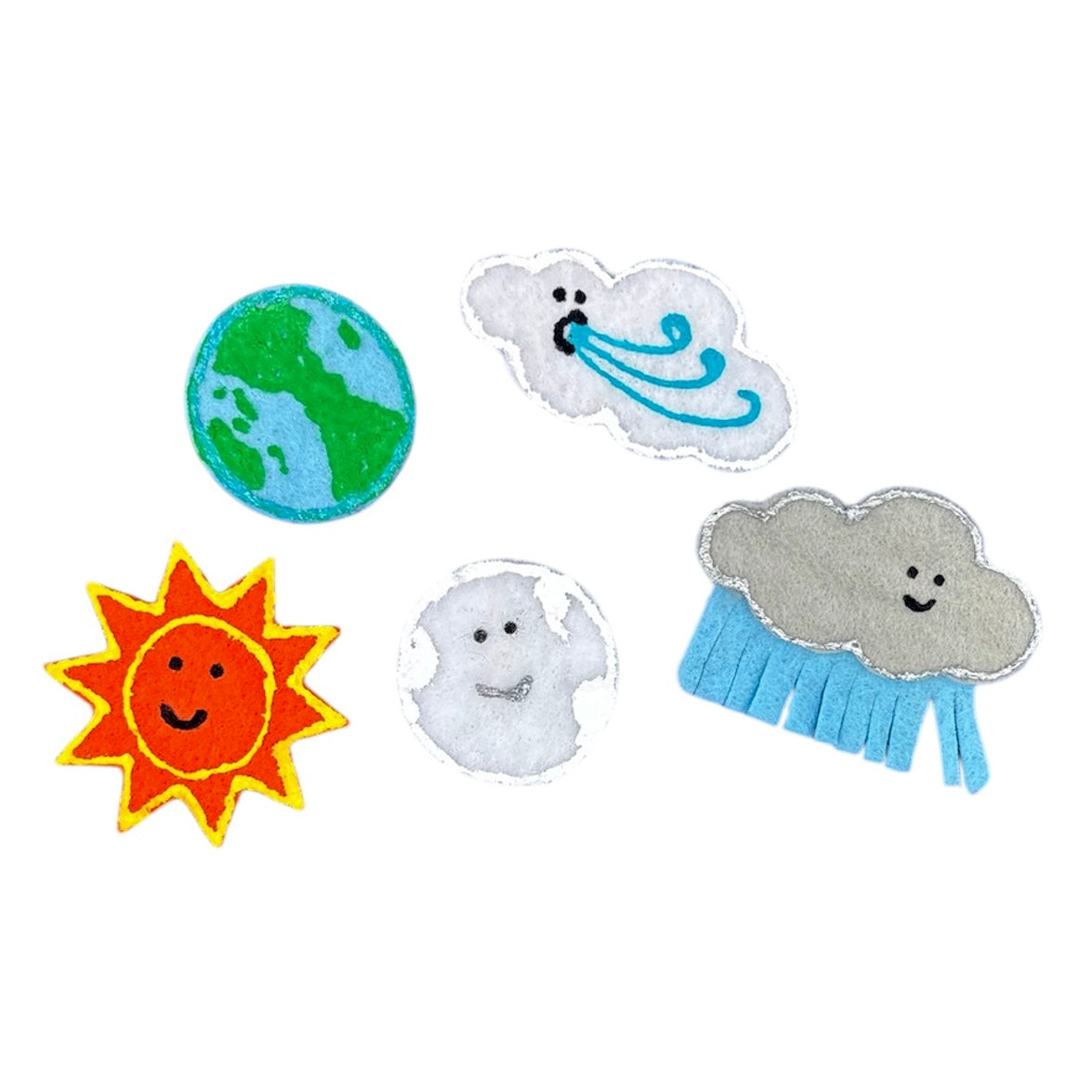 (Includes flower puppet, sun, earth, moon, wind, and rain cloud.)