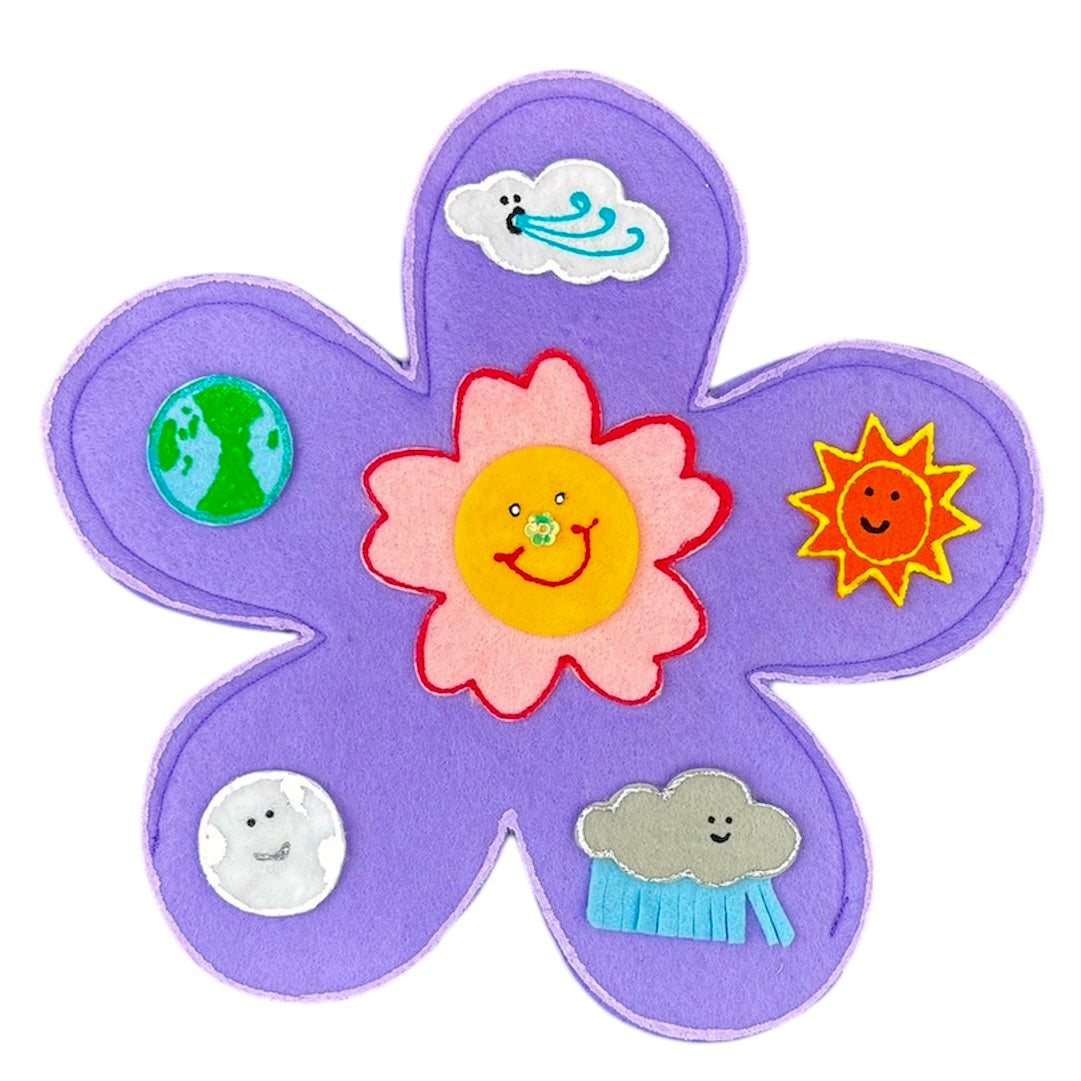 Each of the five elements has velcro on the back to stick securely to the flower puppet.