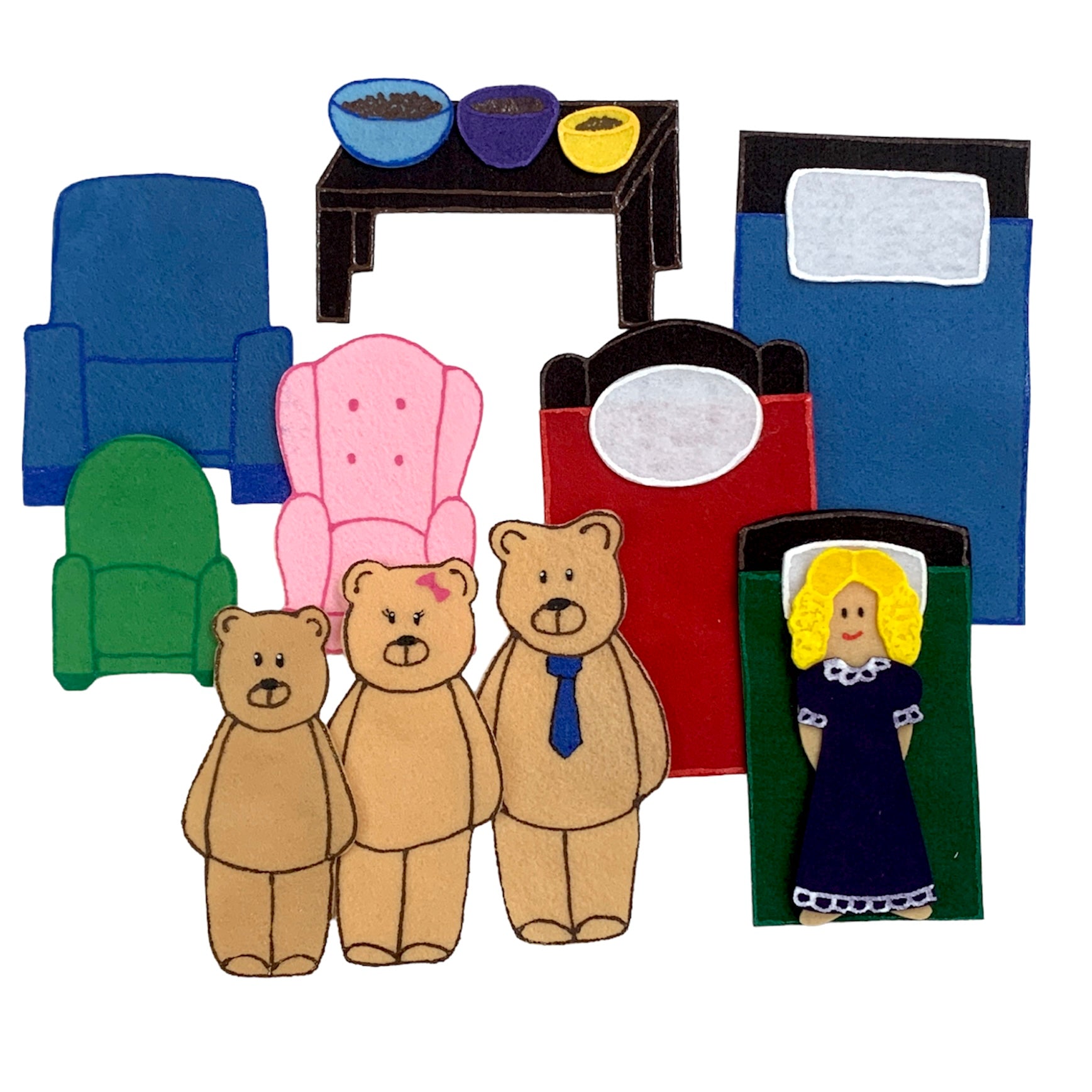 (Comprend Boucle d'or, Mama Bear, Papa Bear, Baby Bear, trois lits, trois chaises, trois bols de flocons d'avoine et une table.)