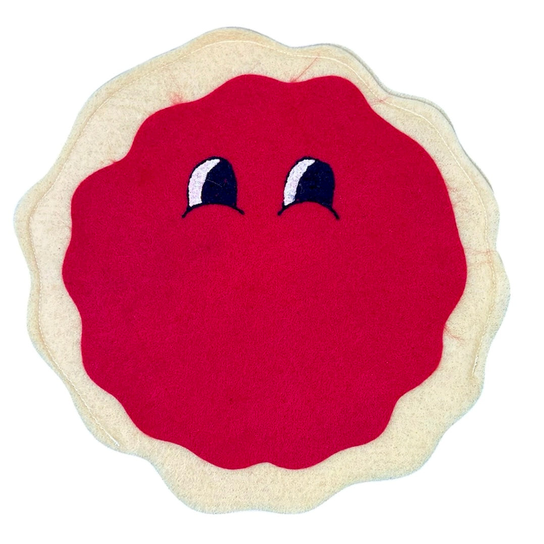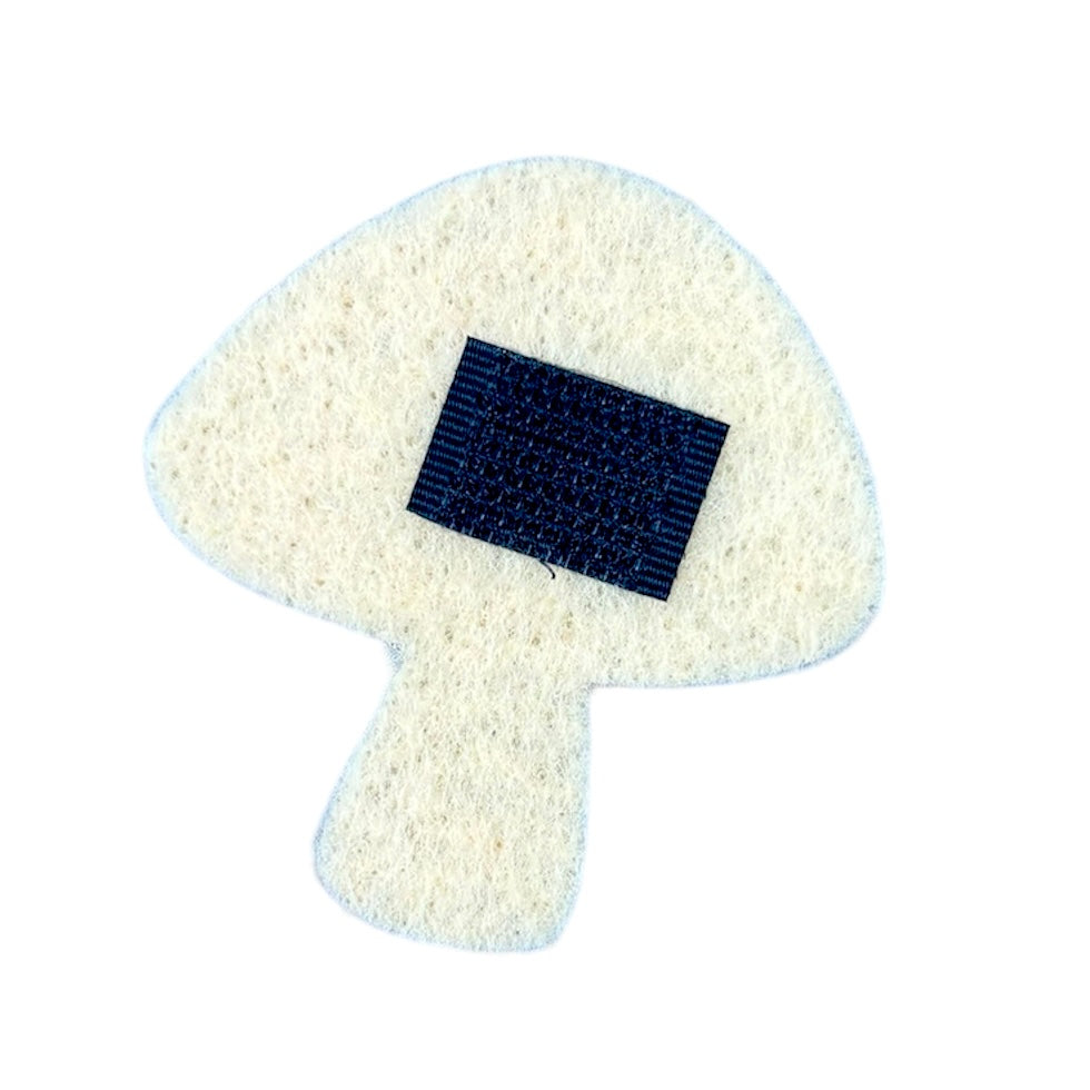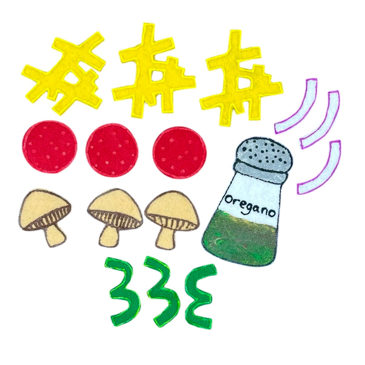 Each of the toppings has velcro on the back to securely stick them to the pizza puppet!