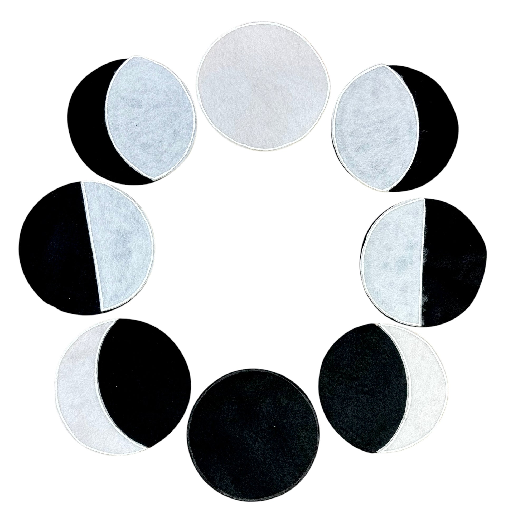 (Includes 8 phases: full moon, waxing gibbous, first quarter, waxing crescent, new moon, waning crescent, third quarter, and waning gibbous.)